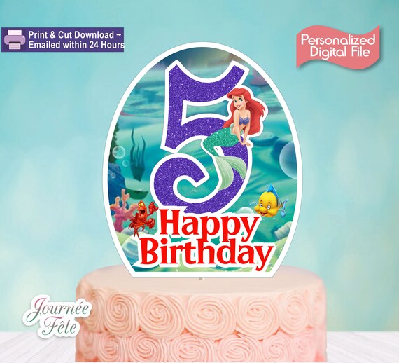 Little Mermaid Diy Printable Cake Topper Age 5 Ariel Mermaid Etsy Singapore
